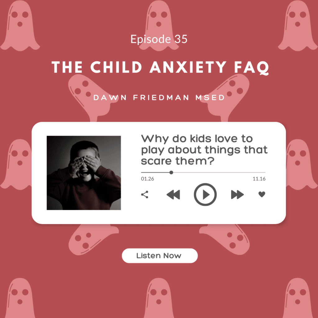 I’ve seen this with other kids around real life scenarios, for example, a child who saw a tree in their yard come down during a storm and becomes obsessed with the weather or makes a point of seeking out big trees on the playground. Or a child is scared of robbers at bedtime but always wants to play robbers at recess. Or you might be seeing this with your own child around Halloween decorations right now, being scared of them and also kind of obsessed with them.